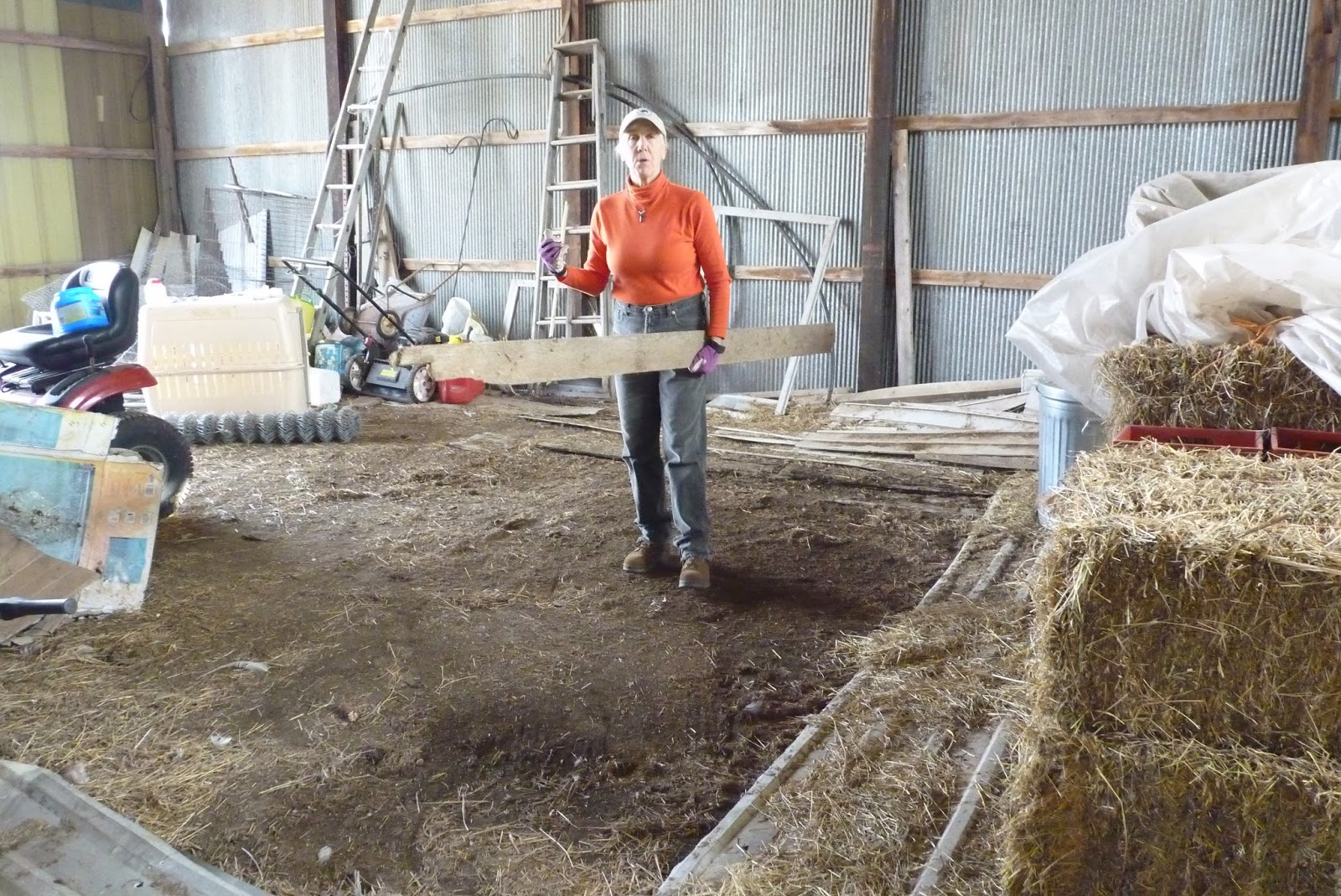 Before building, we needed to do quite a bit of cleaning out in Carol's pole barn to make a space for the kennel to go. We hauled old hay to her compost pile.