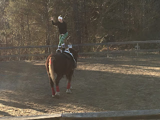 I took several videos and posted this one of one of the girls riding Mauvie with Arielle doing the lunging, a very important component of the team's success. And another video of Arielle vaulting while Maria lunges the horse.