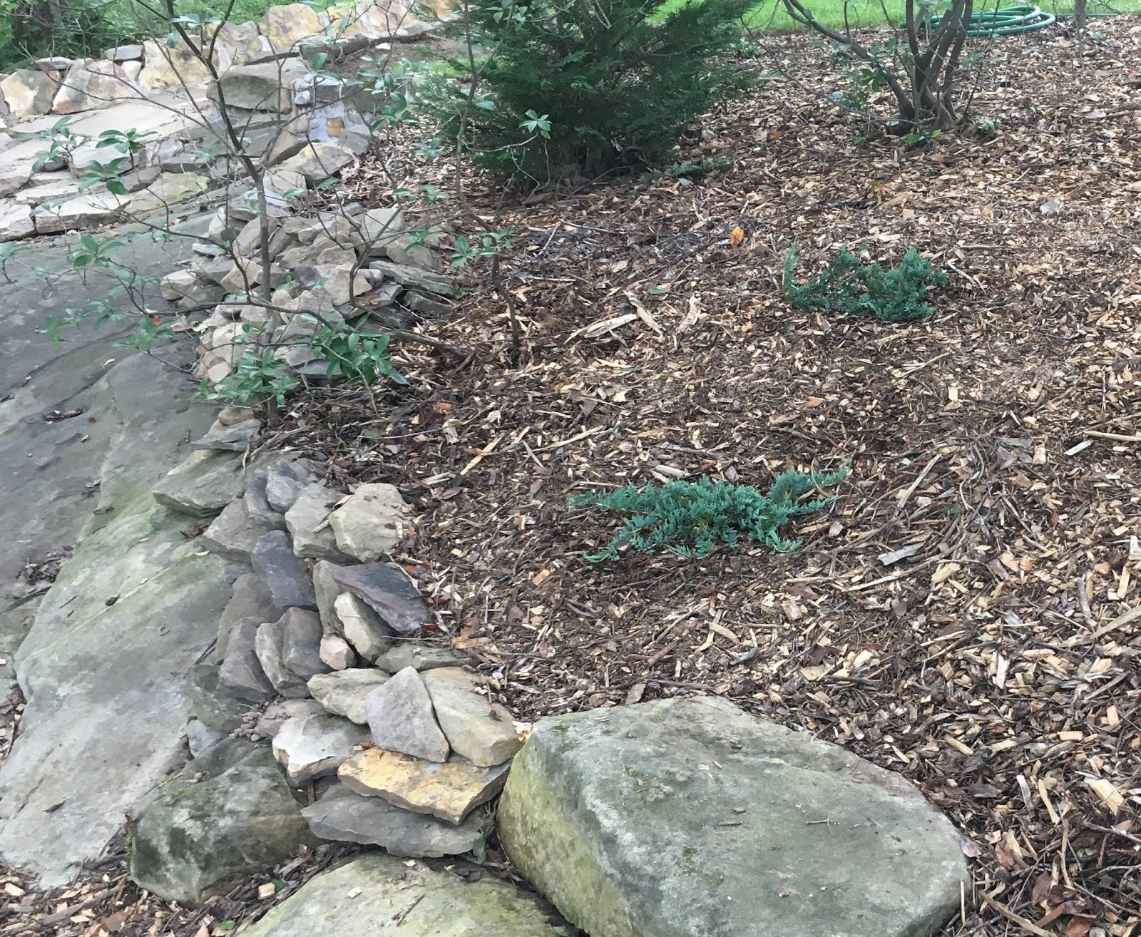 I did get two more juniper planted, seen below. The rock retaining wall needs to be built better, a project for another day.