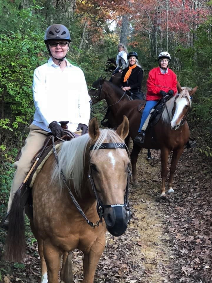 A little later Jan, Cheryl, Karen and Polly arrived. We saddled up our horses and hit the trail. (Patty didn't join us because she had somewhere else to be.)