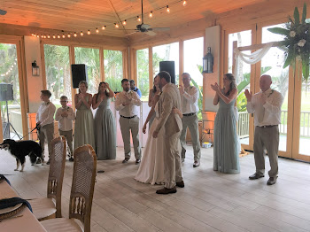 The pre-wedding cocktail party was at a huge house where many of Matt's fiancee's family was staying. They vacation on St Augustine every year, a place they all love, which was why Katie (the bride) chose this location for her wedding. Matt is Greg's son. Greg is Joe's partner in crime (seen in photo) and good buddy and travel (adventure) partner. They had snorkeled with Matt and Katie in the Keys in July.