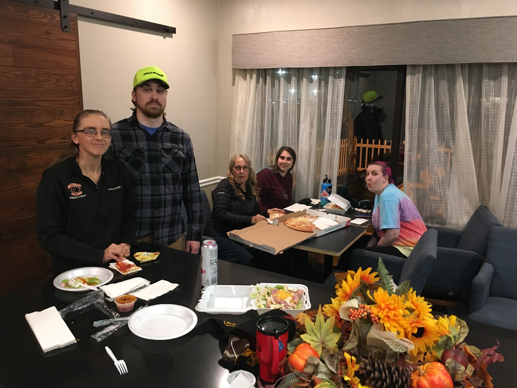Joe went and picked up pizza and salads at Mancino’s, which we all snarfed down on.