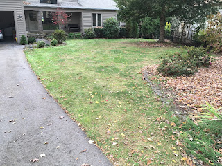 But notice, the two large flower beds have not yet been cleared of leaves.