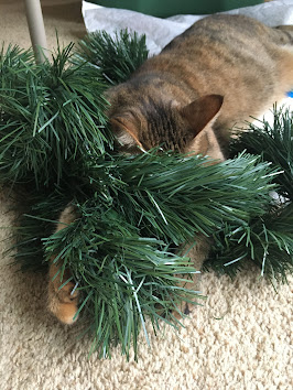 I let Monita play in the garland so as not to bother me while I hung ornaments on the tree.