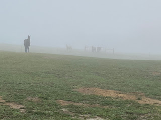 Patty had morning chores and sent these photos of the fog at the ranch. It adds a unique beauty; or just looks a tad eerie.